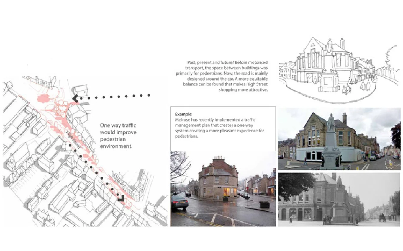 As part of this scheme, Oliver Chapman Architects were commissioned to create a report into under-utilised sites and opportunities for regeneration within the town centre. Through a careful study and analysis of the area and its development throughout history, several key sites and environments were identified as being in particular need of regeneration and improvement. Ideas for these sites were then discussed in collaboration with members of the local community, alongside the Selkirk CARS Steering group, the Selkirk Regeneration Company, and Scottish Borders Council.